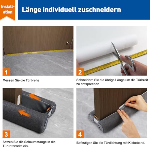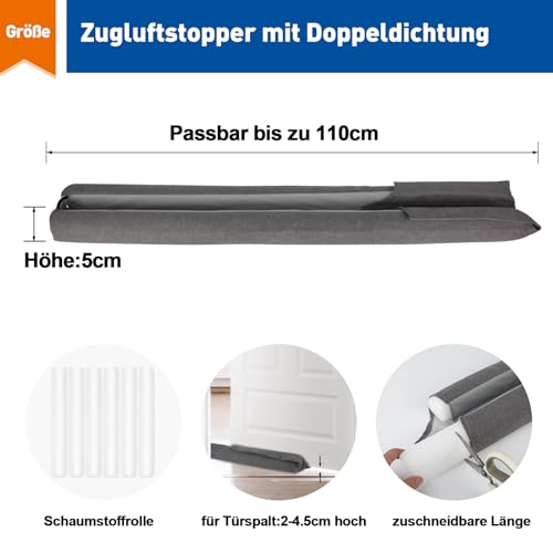 ✅ Op maat te snijden tochtstopper: de grootte van de tochtstopper is 110 cm lang en 4,5 cm hoogte, die de deuropening van 2 cm tot 4 cm kan bedekken. Daarnaast kun je de schuimrubberen strip op de gewenste maat knippen, zoals bijv. 80 cm, 90 cm, 95 cm, 100 cm enz. Pas gewoon de lengte aan en schuif hem onder de deur.