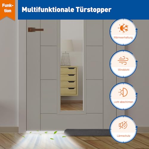 MAGZO Tochtstopper, voor deuren, 110 cm, op maat te snijden, tochtstopper, deurafdichting, koelstopper, voor deur, energiezuinig, grijs